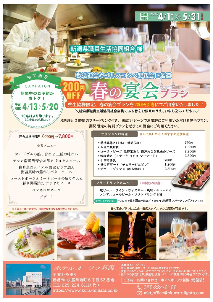 【ホテルオークラ新潟 春の宴会プランのご案内】